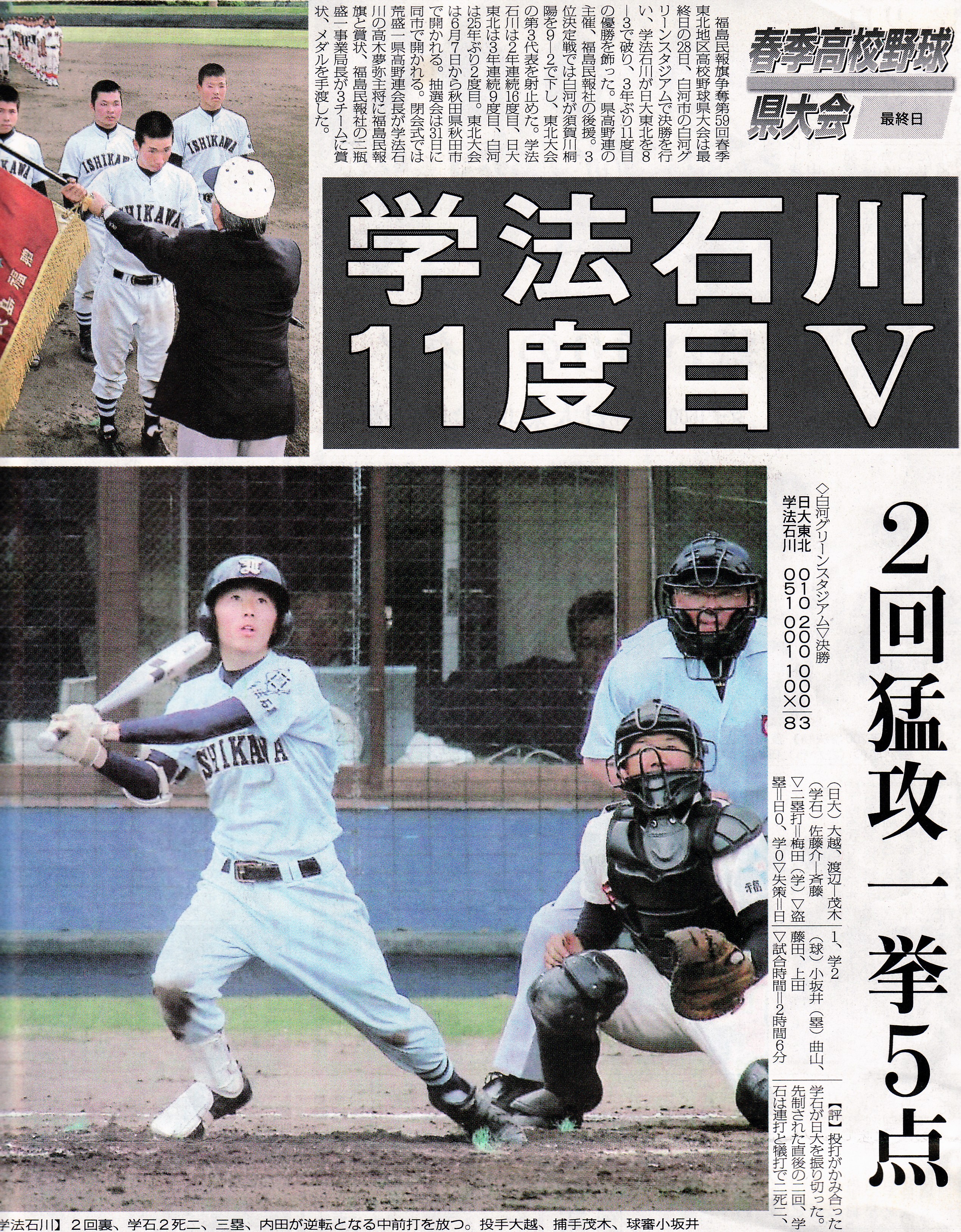 (学法石川高校が日大東北を破り見事に復活した2007年春の県大会優勝の記事)
